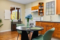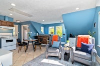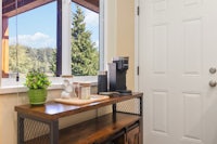 • kitchen with fridge, stove, microwave, Keurig, coffee maker with milk, froth, kettle, toaster, dishes, utensils, pots, pans, rice cooker, smoothie blender, coffee, tea, basic spices, olive oil oil